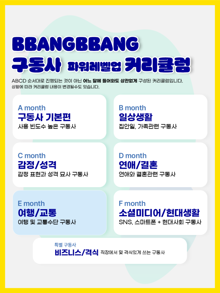 (어느 달에 들어오셔도 상관없게 되어있습니다. ABCDEF 는 각 커리큘럼 명칭일 뿐이며 매달 순차적으로 돌아가는 구조로 되어있으니 걱정마세요!)