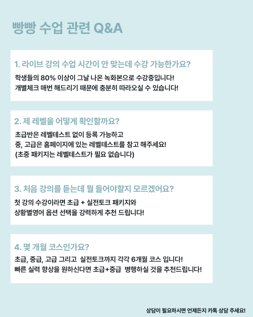 빵빵 강의가 처음이시라면 아래 링크를 통해서 수업 방식이 어떤지 꼭 미리 체크 하고 신청해주세요!